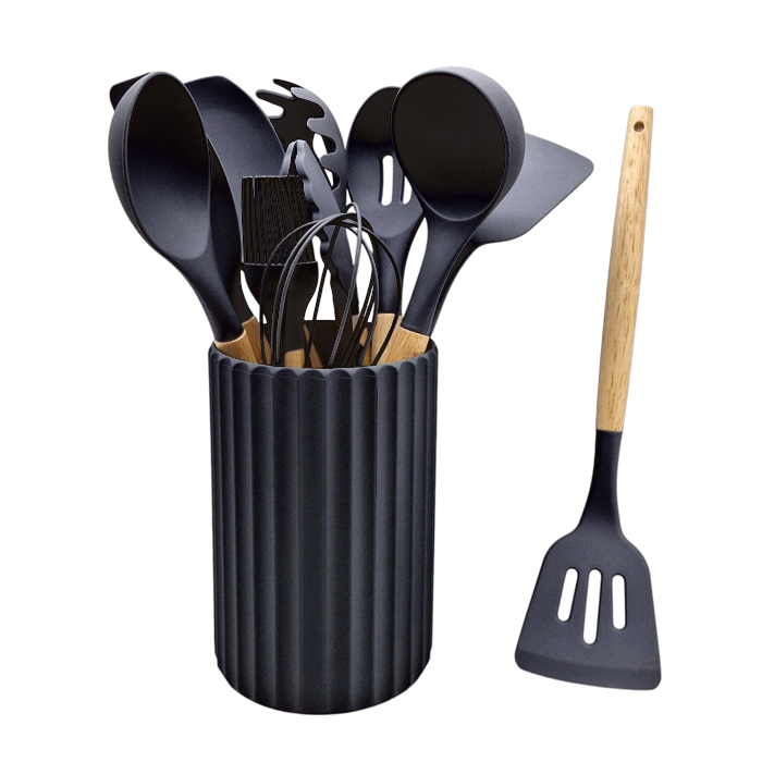 Incluye: espátula, espátula calada, espátula repostera, espátula profunda, cuchara, cucharón, cuchara calada, cuchara spaghetti, pinza, pincel y batidor.