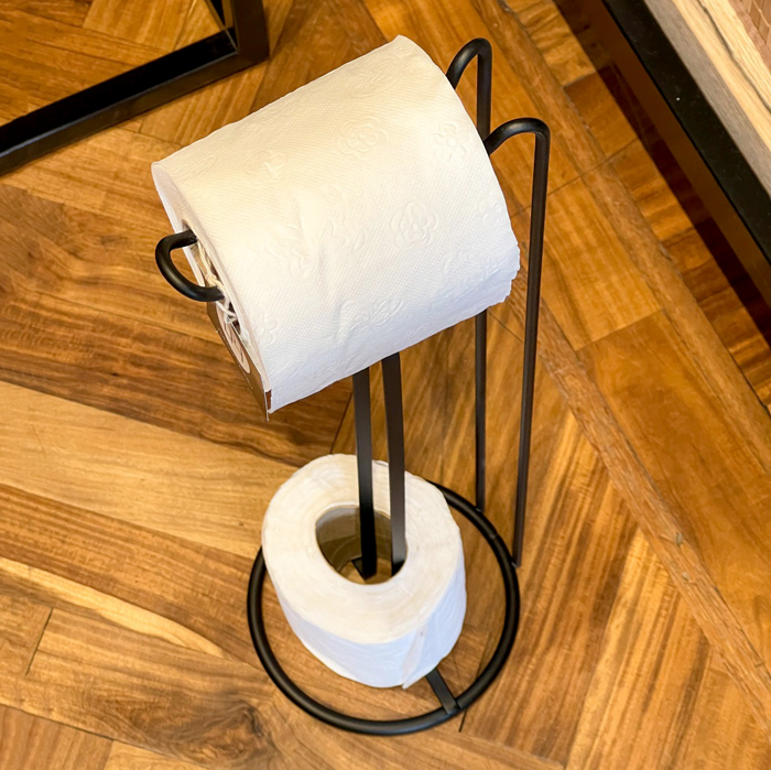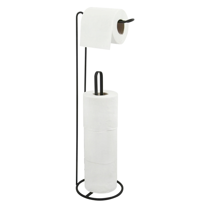Base porta rollo de metal pintado, color negro.