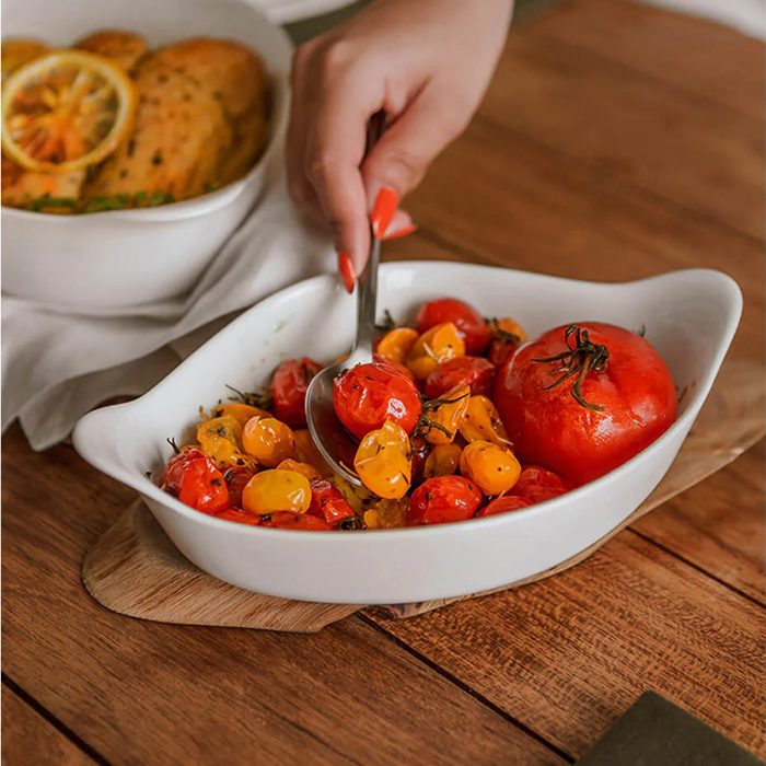 Fuente / Asadera oval con asas de vidrio templado blanco