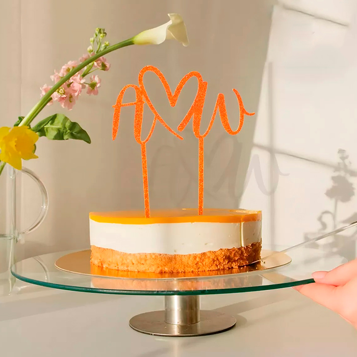 Plato / Pie de Torta de vidrio giratorio con base de acero inoxidable.