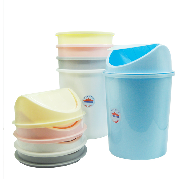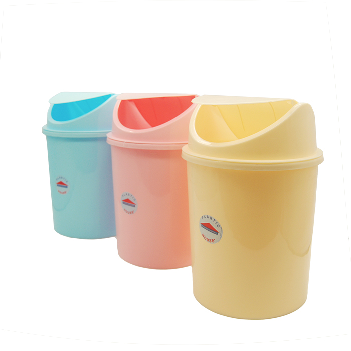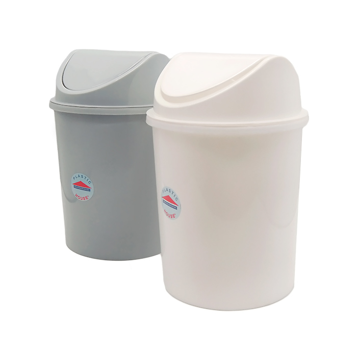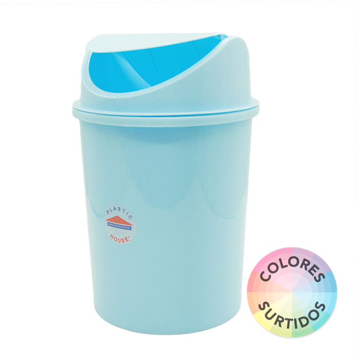 Cesto de residuos redondo de plástico con tapa vaivén.