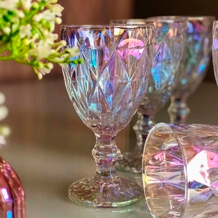Copa Agua/Vino Rombos Tornasolada Pack X6