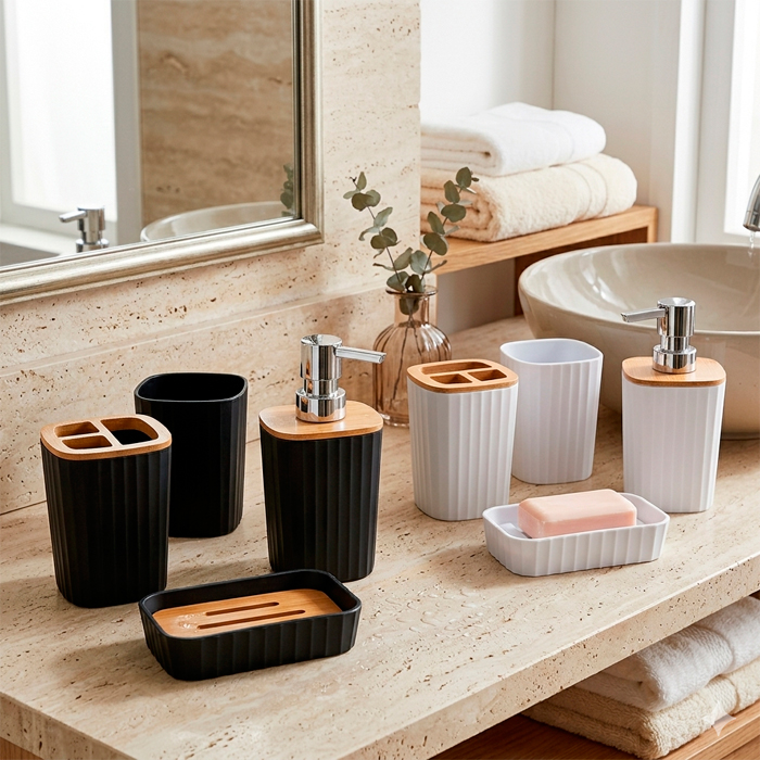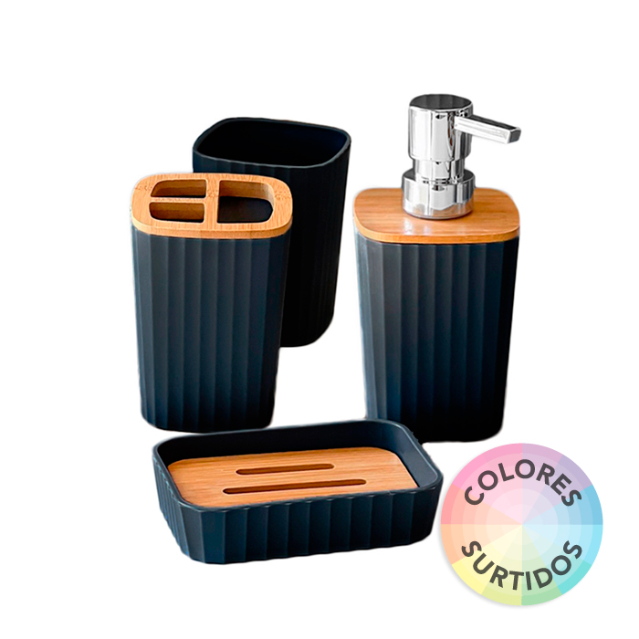 Inlcuye: Dosificador, Vaso, Porta cepillos y Jabonera.