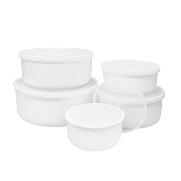 Set X5 Bowl Melamina Blanca C/Tapa