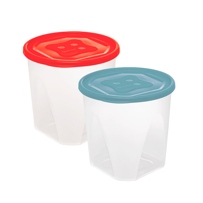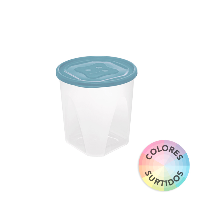 Tarro de plástico transparente con tapa de color.