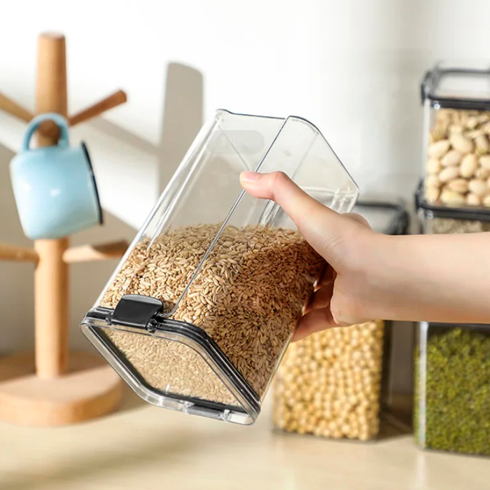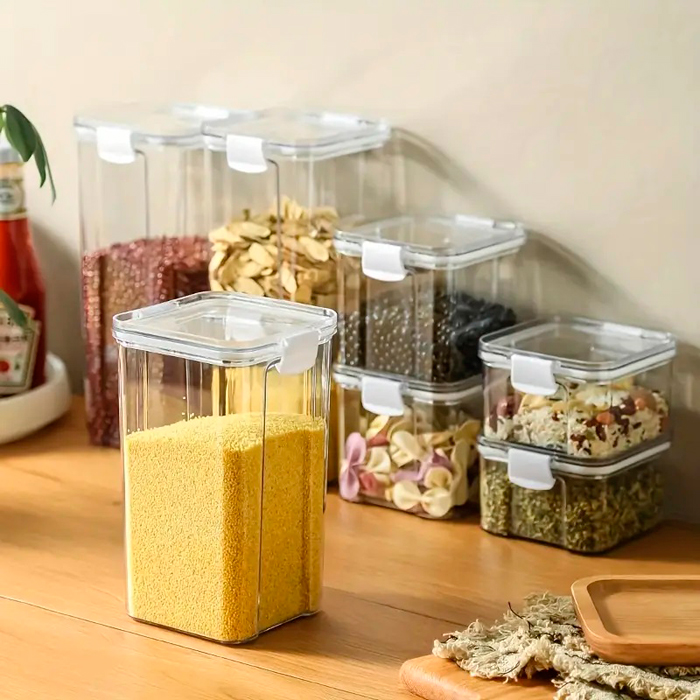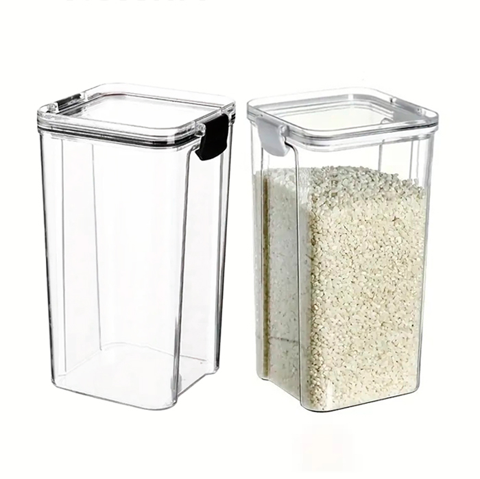 Tarro / Contenedor hermético de acrílico transparente con trabas clip. Apilables.