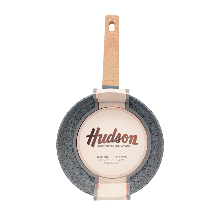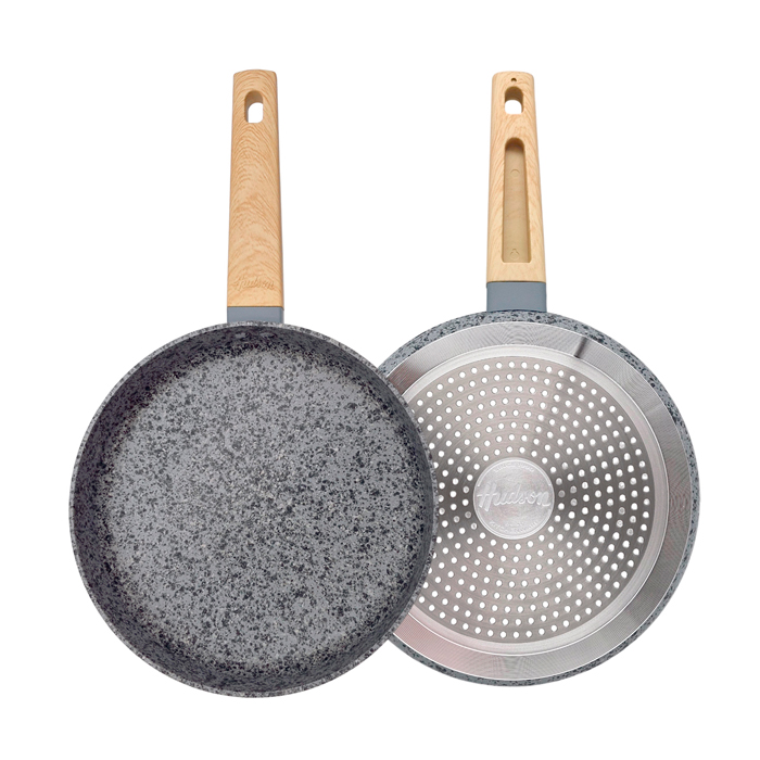 Sartén de aluminio forjado de 2mm con 3 capas de antiadherente, con mango simil madera soft touch.