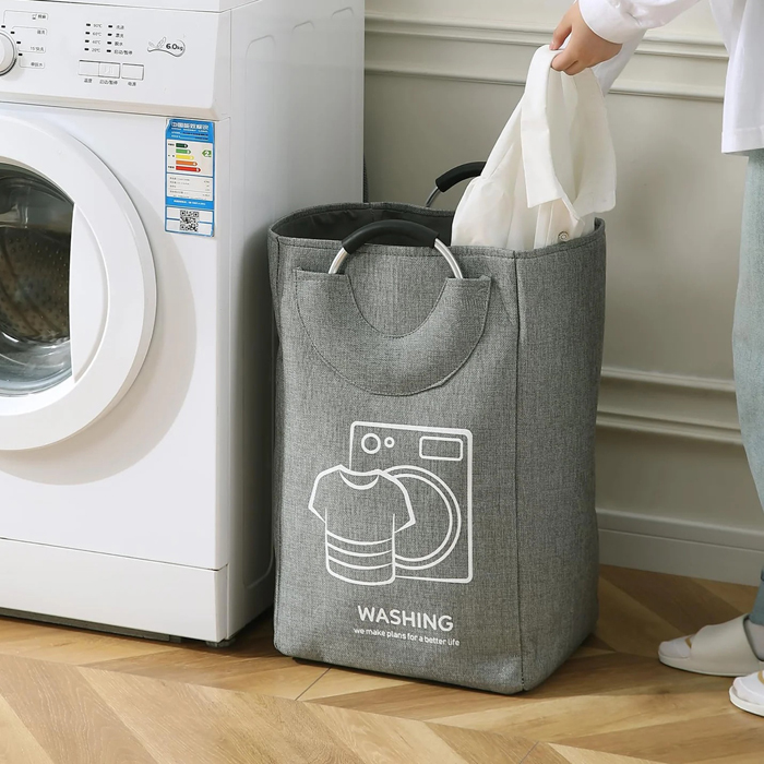 Cesto Ropa Tela C/Asas Metal
