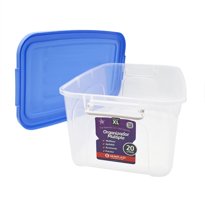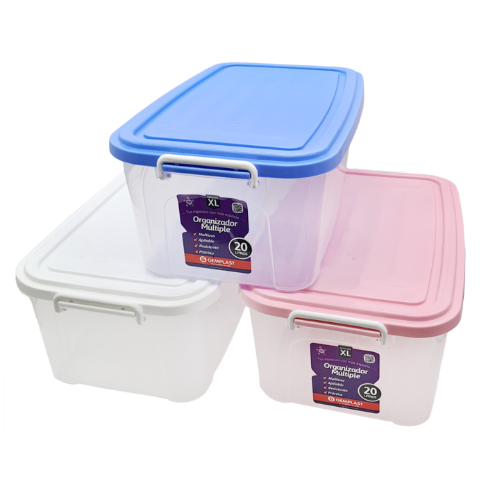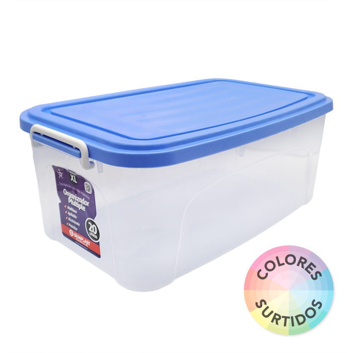 Organizador plástico con tapa y trabas. 20 LITROS.