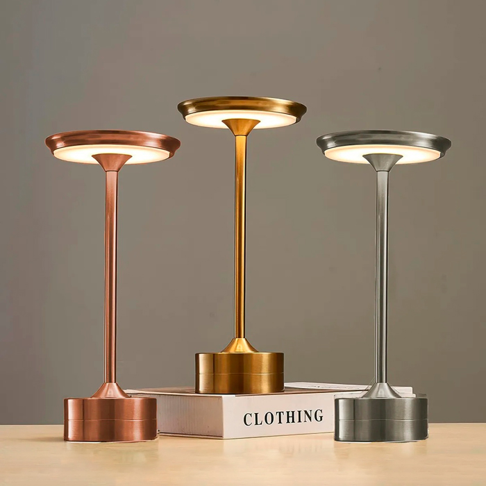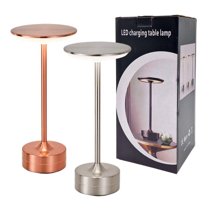 Lampara / Velador inalámrico recargable USB. Metalizada.