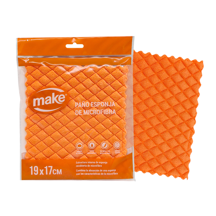 Paño esponja de microfibra. Combina la absorción de una esponja con la microfibra.