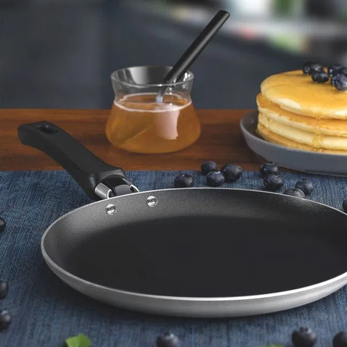 Panquequera de aluminio con revestimento interno y externo antiadherente con mango baquelita antitérmica.