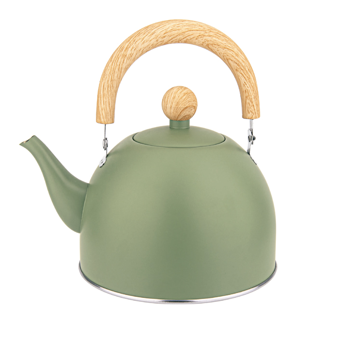 Pava de acero pintado, acabado mate con mango simil madera soft touch y pico cebador.