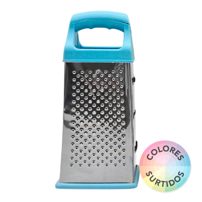 Rallador de acero 4 usos con base siliconada y agarre de plástico