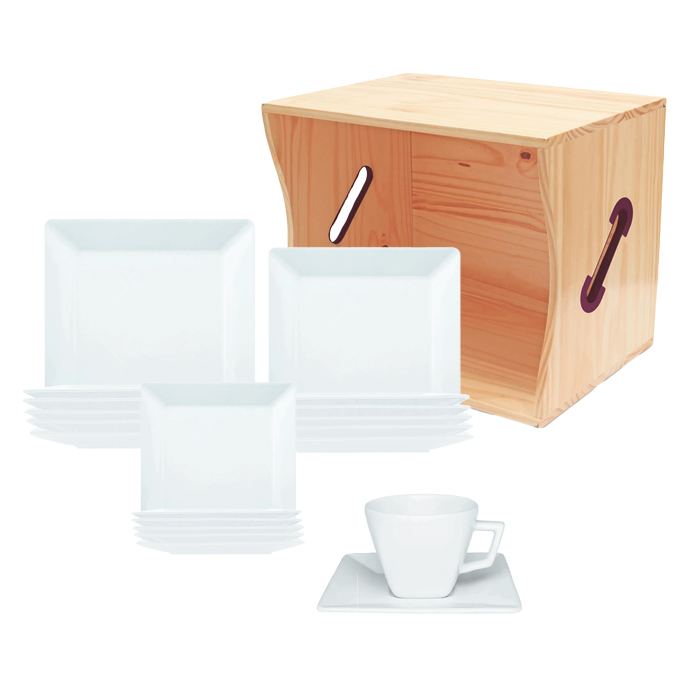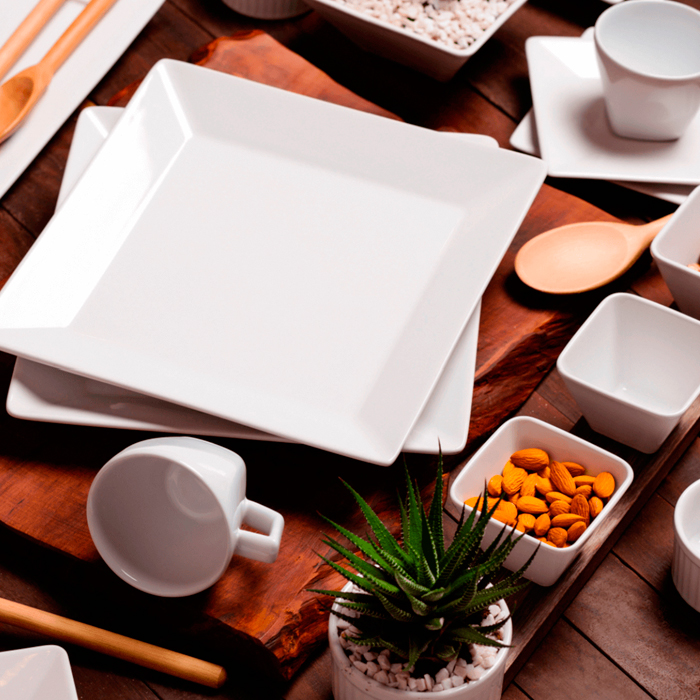 Set vajilla cuadrado 30 piezas platos taza cerámica oxford