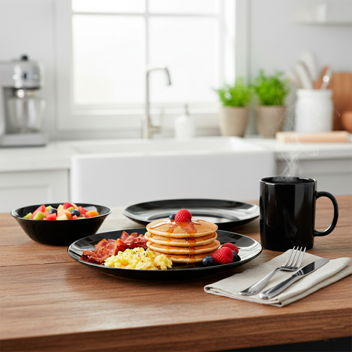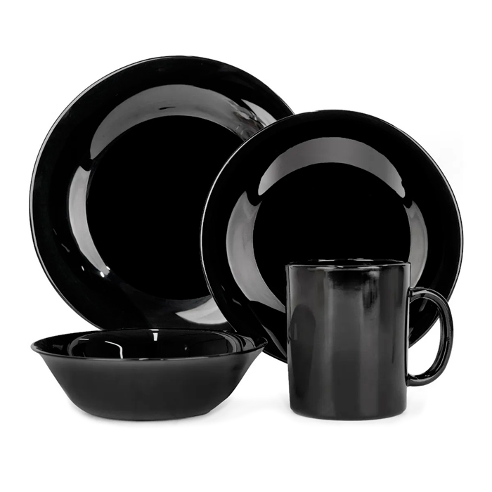 Set de vajilla de vidrio opal negro de 16 Piezas.