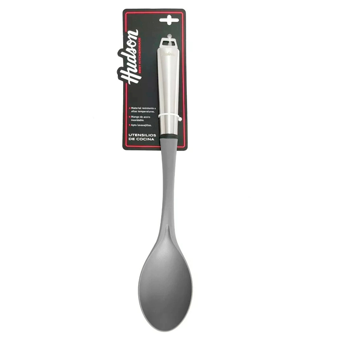 Cuchara para guiso de nylon con mango de acero inoxidable.