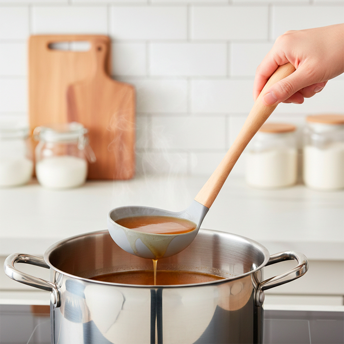 Cucharon de silicona con mango de madera.