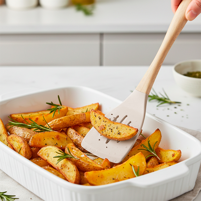 Espátula calada de silicona con mango de madera