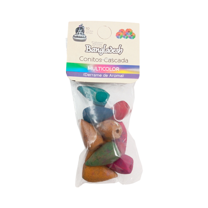Sahumerio /conitos cascada multicolor x 10 unidades.