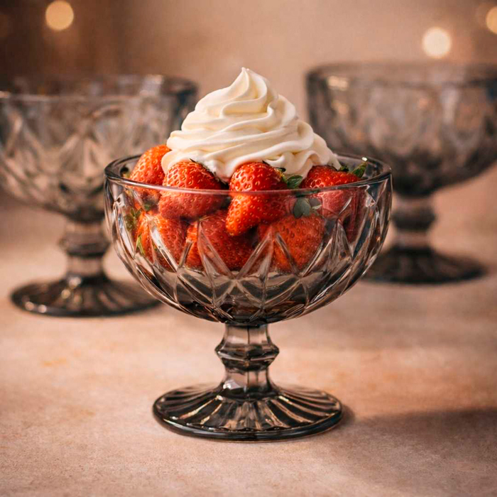 Copa Postre Vidrio Rombos Fume Pack X6