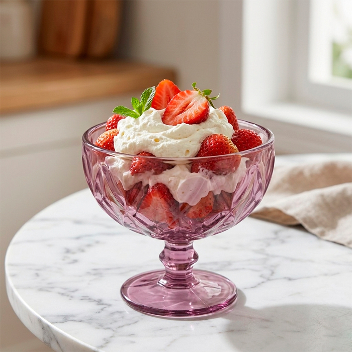 Copa Postre Vidrio Rombos Rosa Pack X6