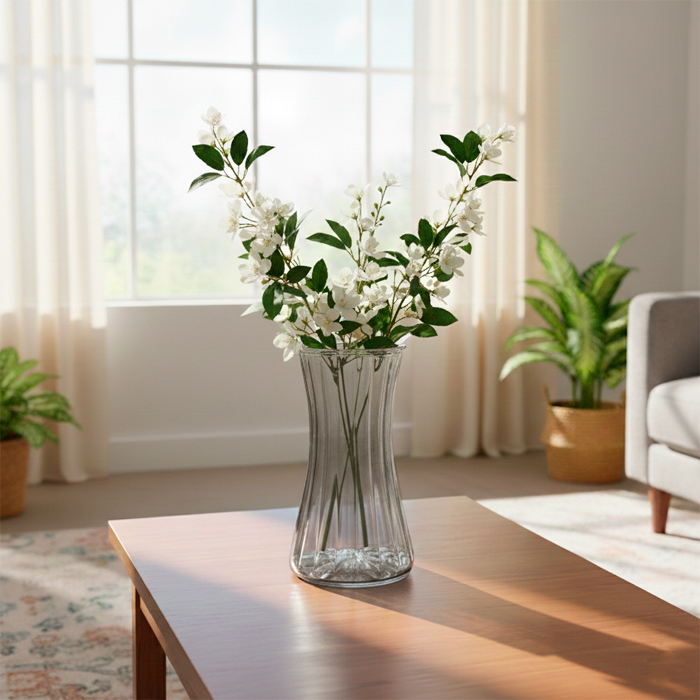 Florero de vidrio rayado
